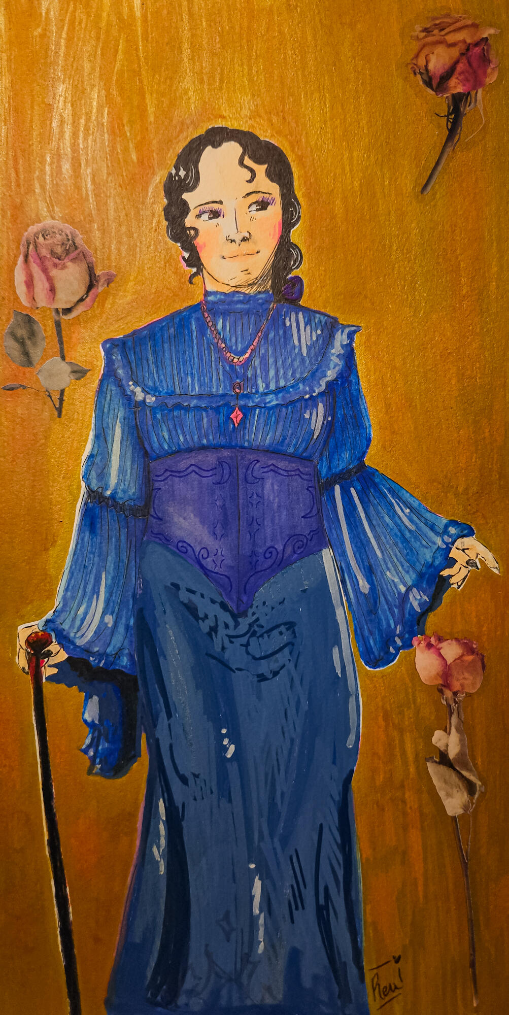 Reuben primarily works with traditional, flat media in their artwork, and often focuses on historical individuals and themes in his work.